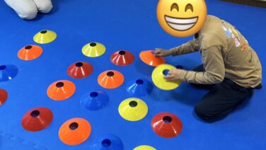 今日は集団活動で4つのエクササイズを行いました♪「風船タッチパスゲーム」「マーカーキャッチゲーム」「バランストーンで引っ張り相撲」「股抜きガードゲーム」です。風船を使った活動では,動きを目で追いかけながらタイミングを予測し,体を素早く動かす...
