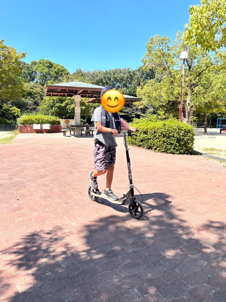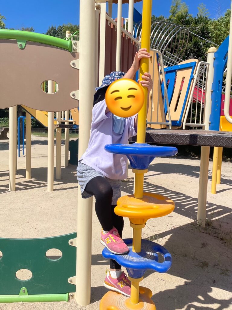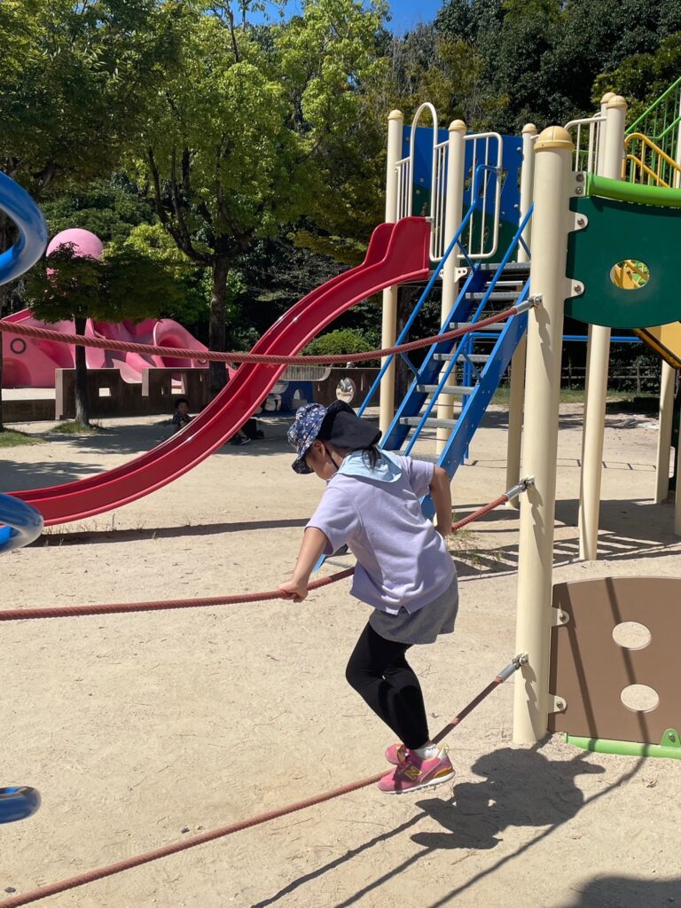 この日は,遊具で遊ぶだけでなく,リップスティックやキックボードに乗る練習も行いました。暑さのためか,利用している人は少なく,遊具はほぼ貸し切り状態でした。遊具遊びの後は,ドングリ拾いに夢中になっていました。