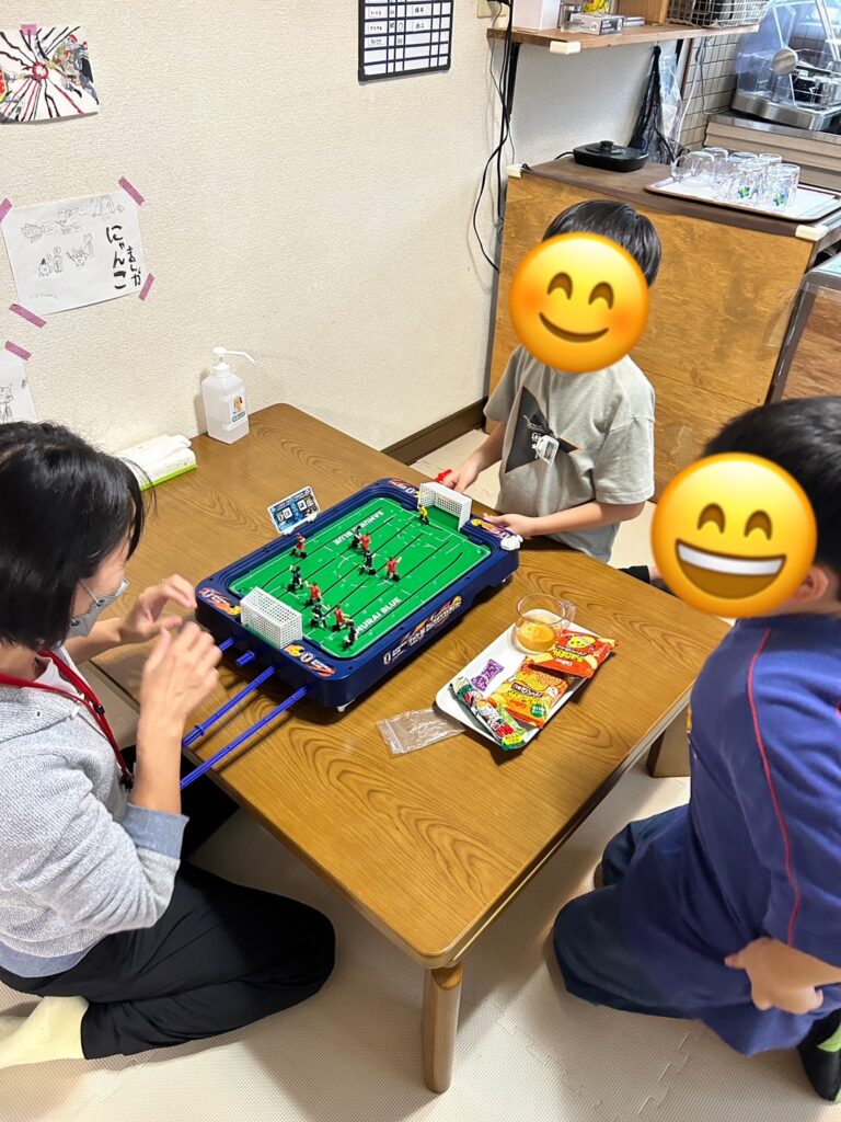 今日は,その選択遊びタイムの間で,ビジョントレーニングや体幹トレーニングを個別支援として行いました。トレーニングをしていると,その仲間を応援してくれたり,手伝ったりする子もいて,さらに楽しい時間となりました。