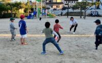 次はボールを使って転がしドッジボールです。ゆっくり転がるボールに油断していた子も多く,スピードが上がったボールに当たって驚く子もいました。