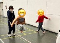 外遊びもできそうもないため,今日は地域の福祉施設のホールを借りてみんなでエクササイズタイムを行いました。