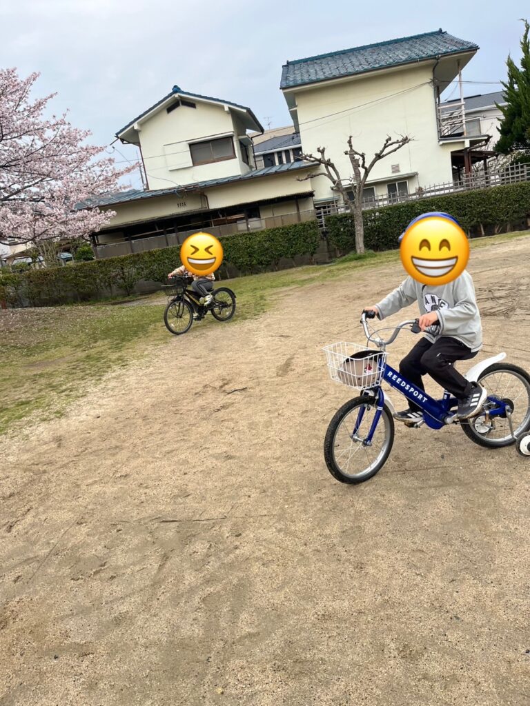 公園は貸し切り状態で,キャッチボールをしたり,自転車練習をしたりして,楽しく活動することができました♪