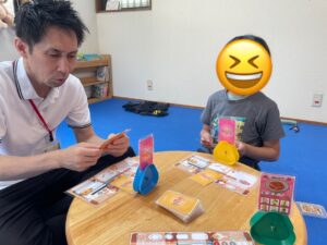 今日は,活動の1つに「エクササイズタイム♪」を行いました。運動用マットを敷き詰めて,リズムトレーニングをしました。リズミカルなフットワークメニューを楽しくこなすことができました♪