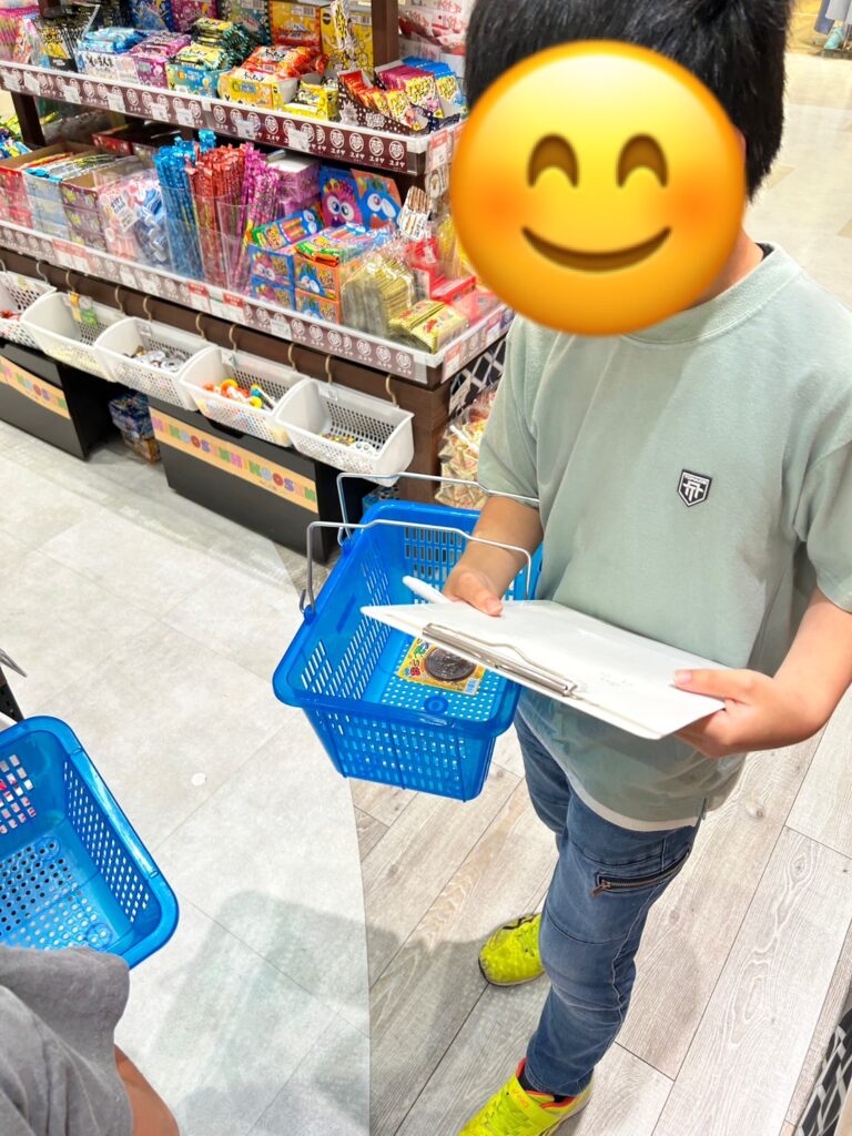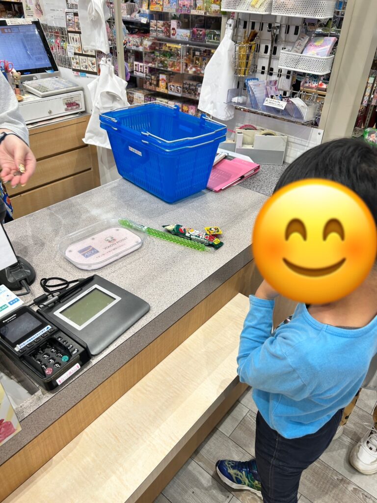 おやつ代を持って,1人1人が自分の好きなお菓子を選んで買います。もちろんおやつ代をオーバーしないように,代金も計算しながら選んでいきます。そして支払いも,自分でお金を払ってお釣りを受け取ります。