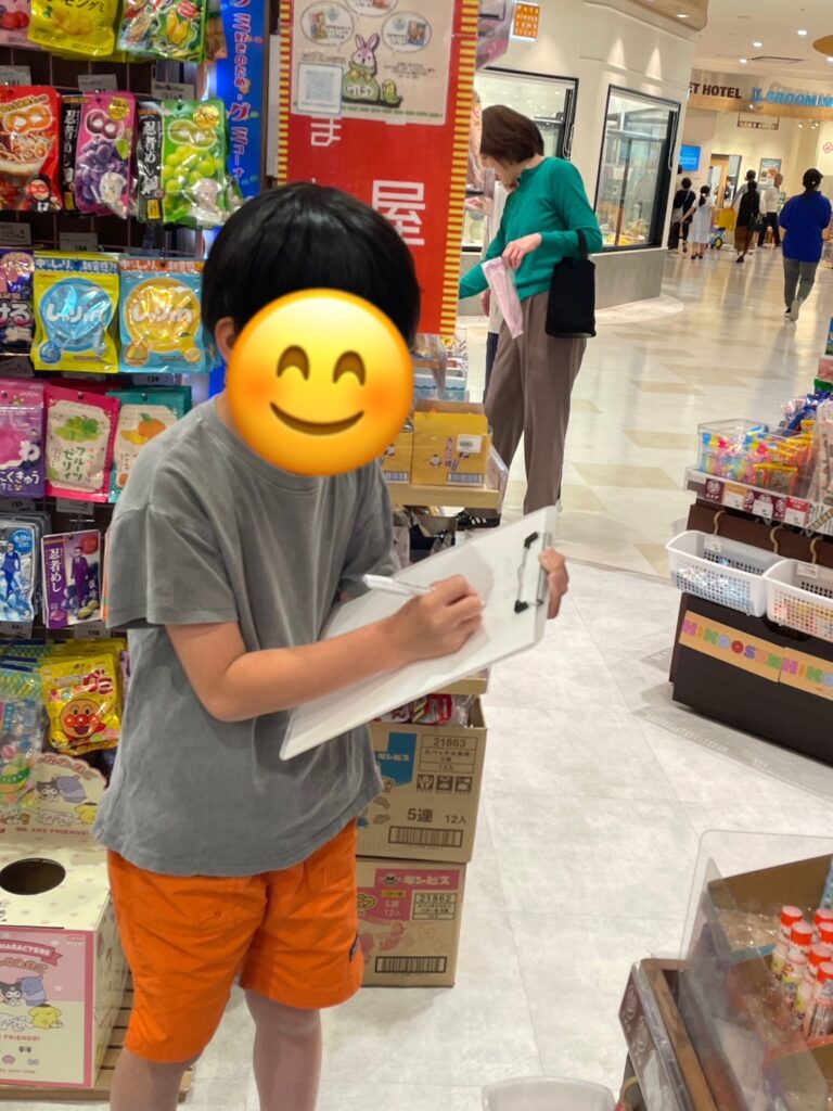 買ったお菓子は,食後のデザートとして美味しくいただきました。また,お菓子についている「くじ」が当たった子もいて,さらに楽しい思い出となりました♪