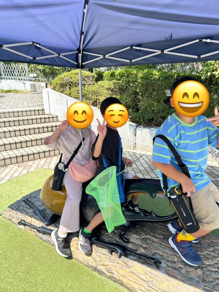 ただ外での活動は,日差しが強く10分程度の活動となりました。そのわずかな時間でも,虫取りに夢中になり,トノサマバッタやショウリョウバッタを捕まえて大興奮していました。