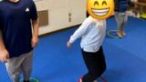 まずはウォーミングアップで動物歩きです。いろいろな歩き方で前だけでなく,後ろや左右にも歩くこともポイントです。次にラダートレーニングです。いろいろなステップワークを行いましたが,少しずつ難しいステップになると雑になりがちです。ゆっくりでもいいから丁寧に動かすことを意識しました。中には素早く上手にステップ出来る子もいて驚きました。