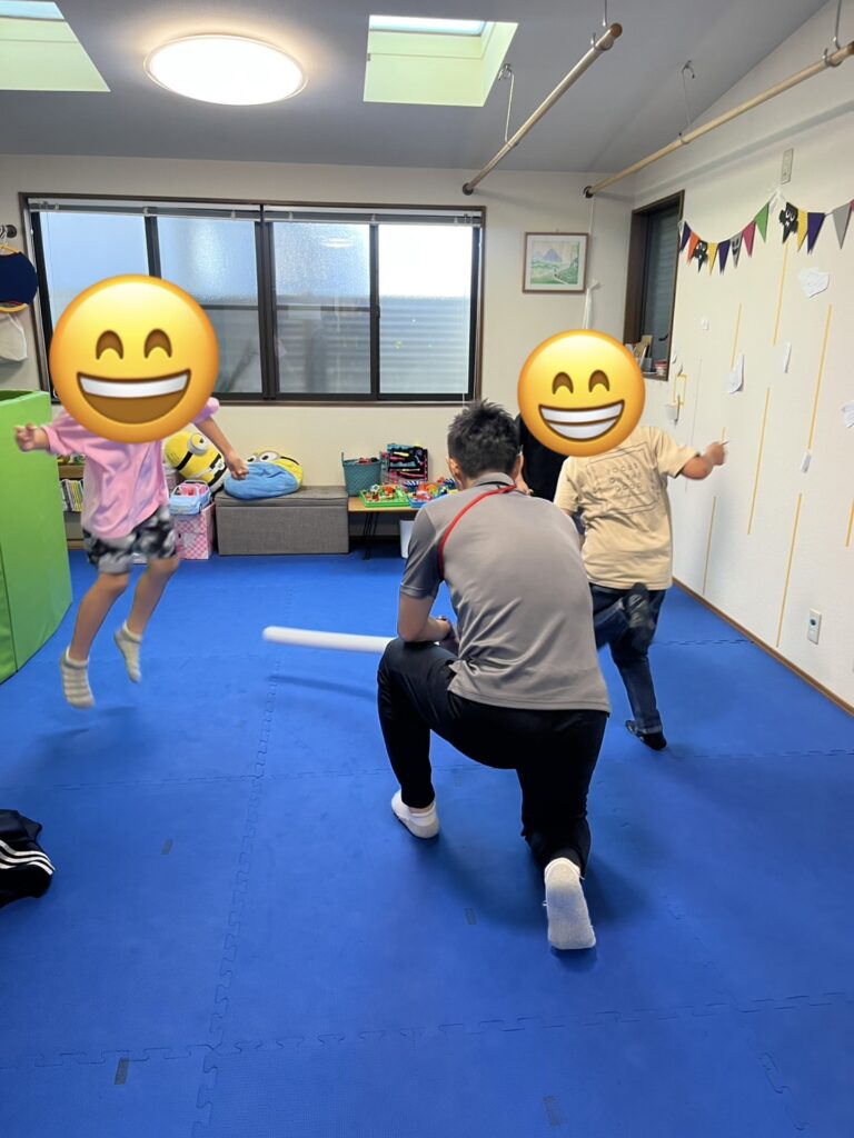 スティックに捕まらないように周りを見て逃げるスティック鬼ごっこを始め,スティックを避けたりジャンプしたりと身体をしっかり動かして,楽しむことができました。