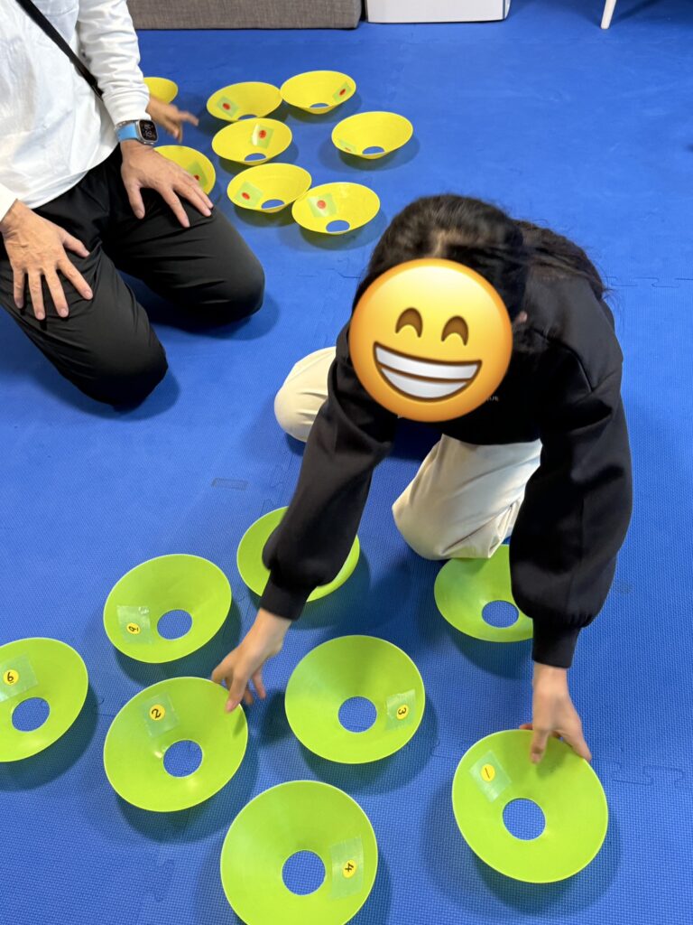マーカーの裏に1~9までの番号が書いてあり,順番通りに積み重ねていく活動です。すばやく番号順に積み重ねることで集中力を高めるとともに,番号を隠すことで,記録力や思考力,目と手の協応運動を育てることにつながります。