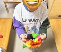 作り方をみんなで確認して,丁寧に折っていきます。意外と難しかったのは1つ1つの折ったパーツをつなぎ合わせるところです。指導員に手伝ってもらいながらも,みんな最後まで仕上げることができました。