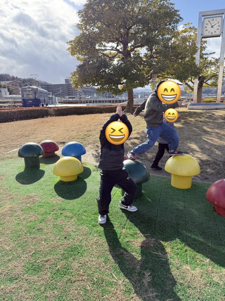 館内では,いつものようにシミュレーターやジオラマ見学を楽しむとともに,屋外の中庭では鬼ごっこをして,おもいっきり楽しむことができました♪