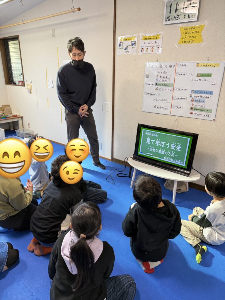 Kajiッ子では,地震及び津波洪水に対しての避難訓練と火災による避難訓練を年に2回実施しています。昨年の7月に地震の避難訓練をしていたのですが,その成果が子ども達だけでなく,我々職員もしっかり発揮できていたと思います。