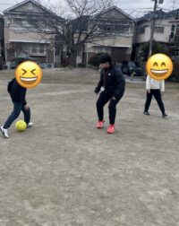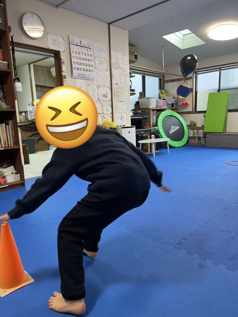 コーンの距離を少しずつ離して,難易度を上げながら何度も挑戦していました♪