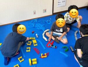 今日の「選択遊び」では,Kajiッ子Baseに新しく増えたおもちゃ「プラレール」にみんな大興奮でした♪1人1人が思い思いのレールを組み合わせて列車を走らせて楽しむことができました。