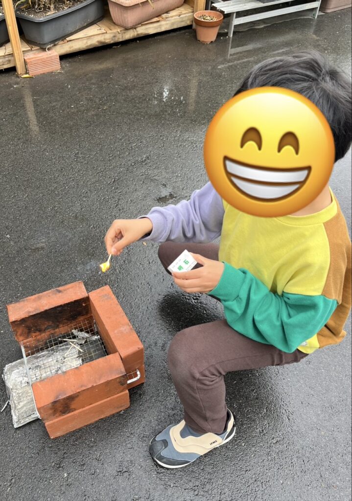 この日,初めてマッチを擦った子もいたのですが,みんな上手にマッチを擦って火をつけることができました。