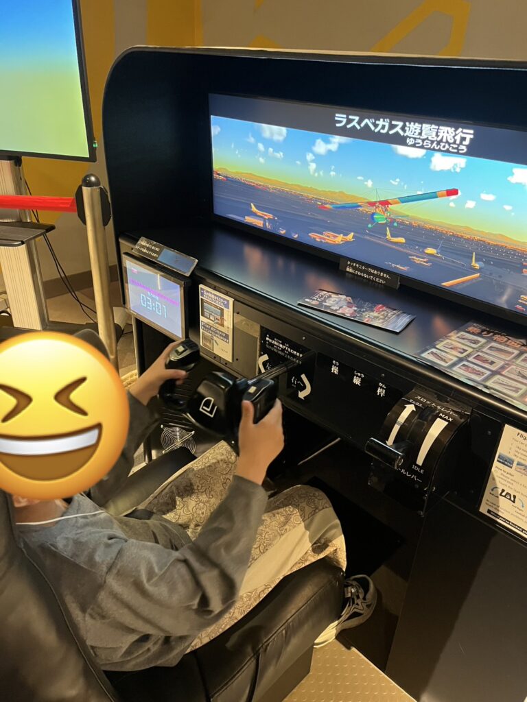 お弁当を食べた後は,館内の見学です。一番人気は,シミュレーターです。電車や飛行機のシミュレーターを楽しむとともに,館内の模型の展示を友達と楽しく見学することもできました♪