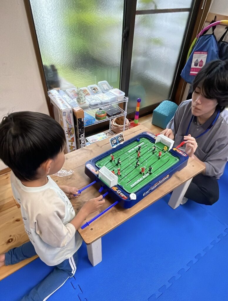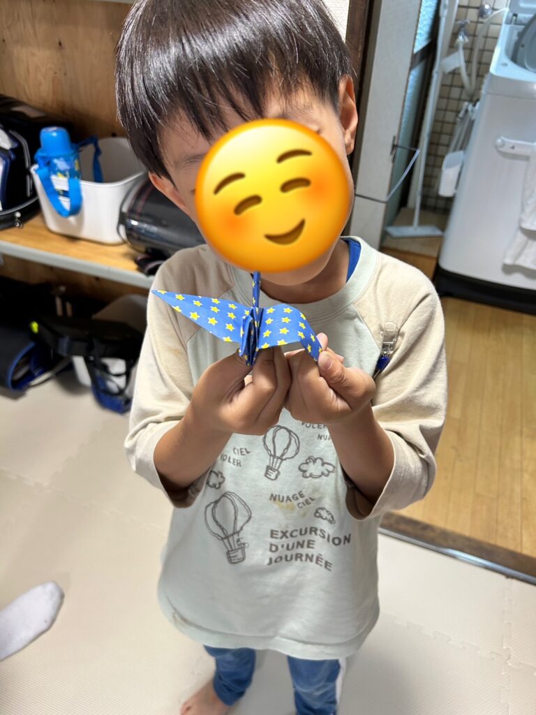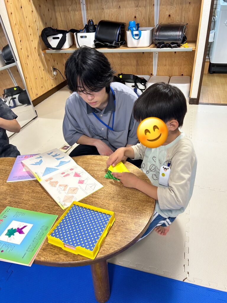 「しず~かタイム♪」の遊びも広がってきました。折り紙をする子もいれば,ビーズでアクセサリーを作る子,読書する子,ペーパークラフトをする子など,それぞれ静かに取り組む遊びを見つけて夢中に取り組んでいます♪この日は,折り紙とペーパークラフトに夢中になっていました。